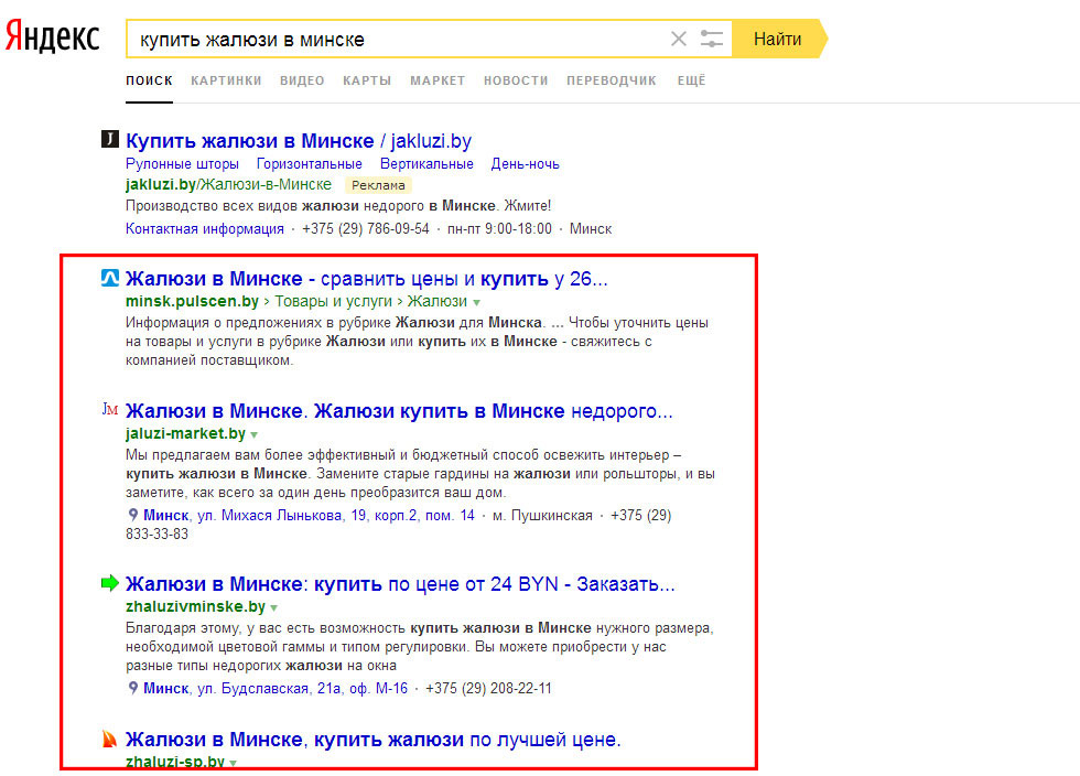 - При вводе пользователем одного из выбранным запросов в результатах поиска появляется Ваш сайт в ТОП10